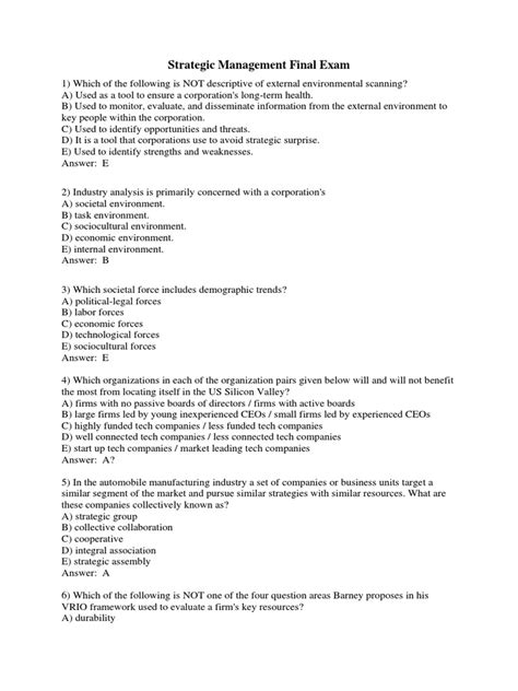 Download STRATEGIC MANAGEMENT FINAL EXAM Doc ManyBooks